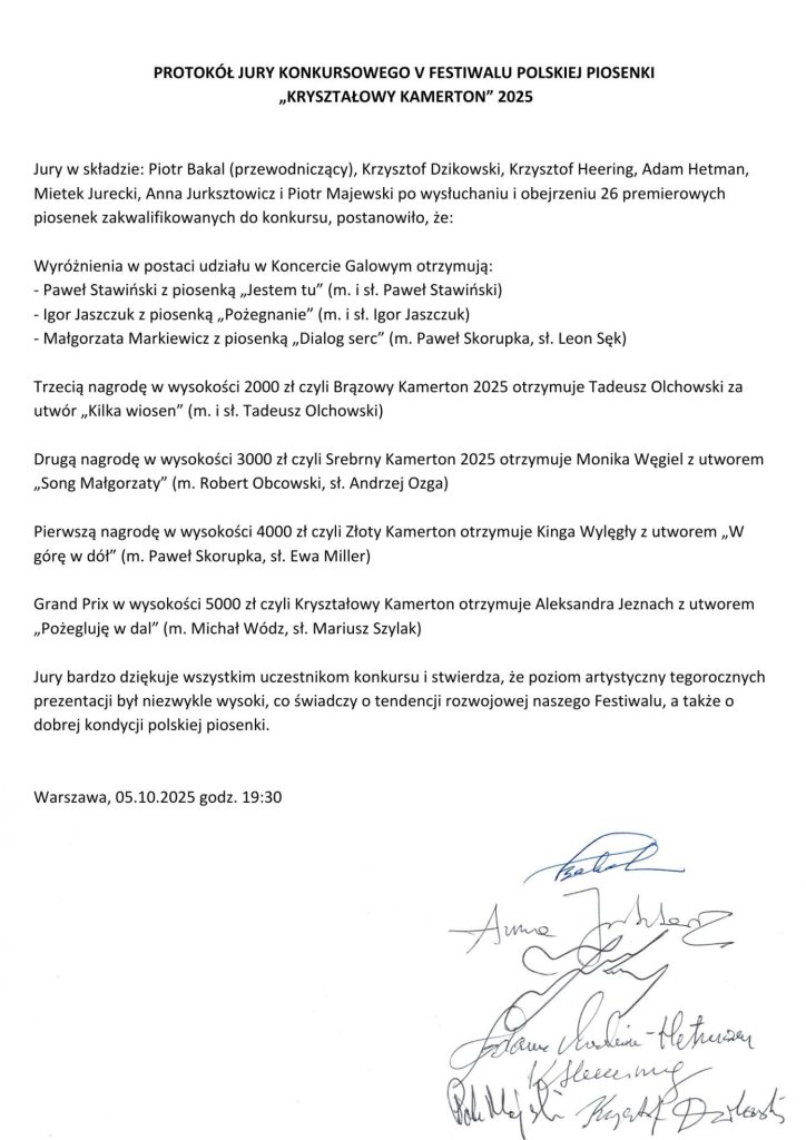 Gratuluję wszystkim wykonawcom II części konkursowej (występy live) festiwalu Kryształowy Kamerton! Podczas obrad jury odbyło się kilka gorących dyskusji, co świadczy o tym, że poziom kilkorga laureatów był bardzo wyrównany.